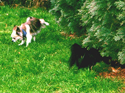 | "Hey Jungs - alle reinkommen! Die Zweibeiner kochen was! | "Komm gleich, aber den Käfer muss ich noch markieren,...... | bevor ich mich mit meiner neuen Verlobten ne Runde hinhau!" |