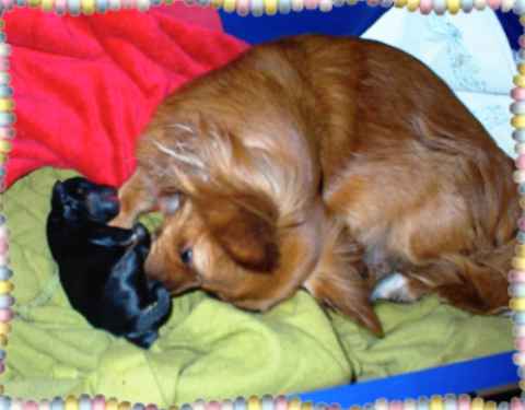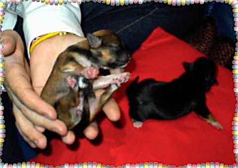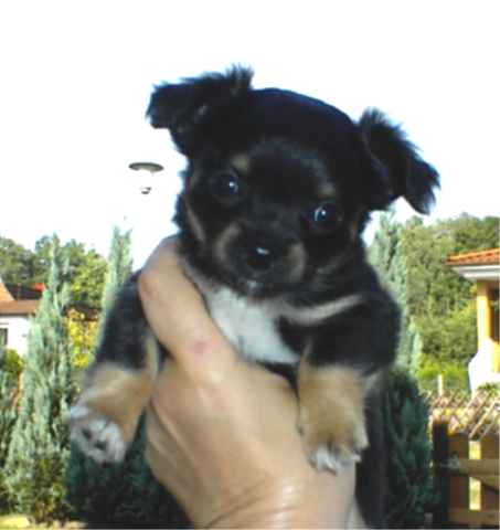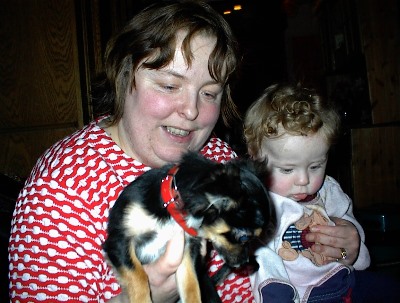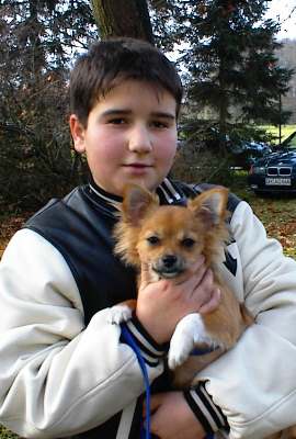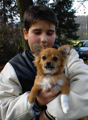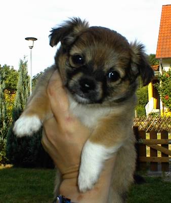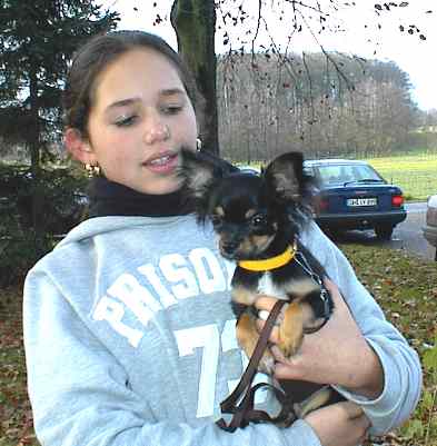 | Toni mit 6 Monaten | Auf dem Arm von Rebekka | .....und bei Frauchen | ||