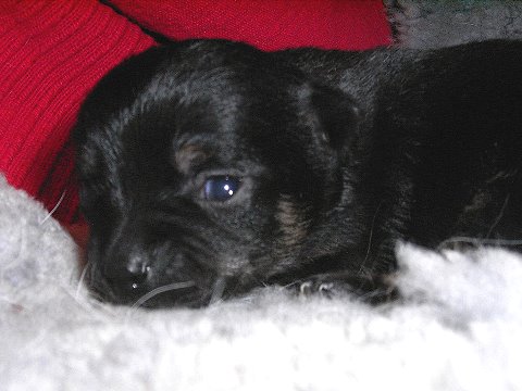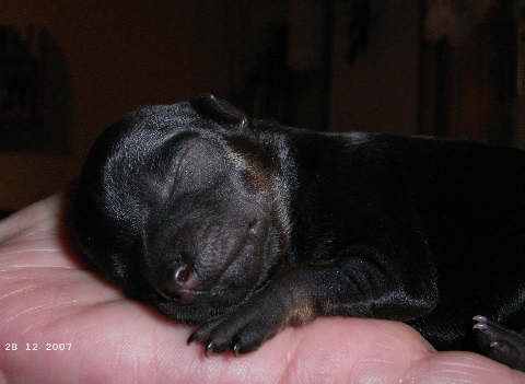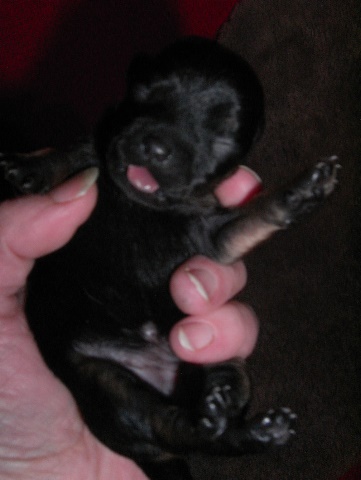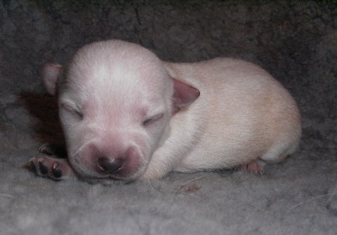 Die Welpen sind jetzt 2 Wochen alt und haben sich prächtig entwickelt. Alle haben super an Gewicht zugenommen und mit 2 Wochen und 2 Tagen endgültig die Augen geöffnet. Der eine oder andere hat sogar schon einen kleinen Ausflug gemacht, obwohl er noch nicht gucken konnte, nur laufen. Aber wenn die Mama ca. 1 m entfernt war, gabs dann auch schnell Gebrüll.