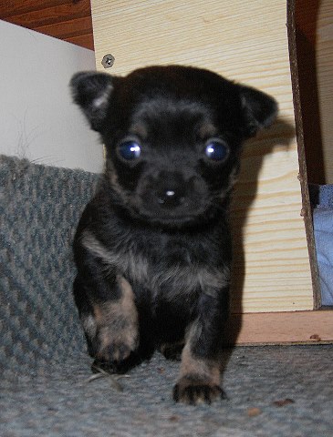 Die Ausflüge und Spielphasen werden bereits länger, die "fast-feste" Mahlzeit wurde mittlerweile gegen Welpenfutter pur umgetauscht. Mama Tara lässt die Welpen jetzt schon mal ein bisschen allein, wenn sie schlafen. Sie kommt allerdings sofort zurück, wenn der erste einen Pieps von sich gibt. Mit 4 Wochen wurde auch schon mal Bekanntschaft mit der großen Schwester Dipsy gemacht - mit unterschiedlicher Begeisterung ;-)