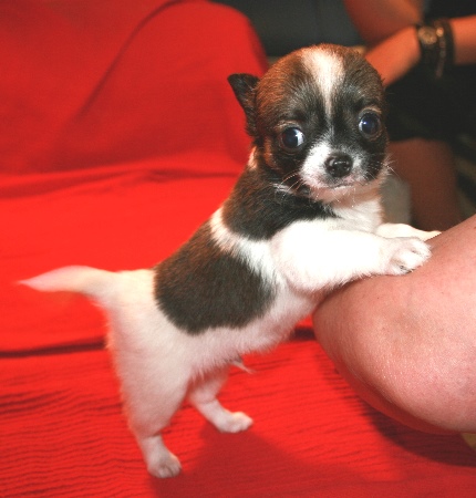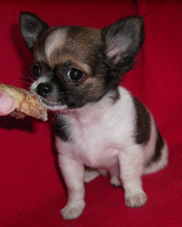 Aus Kardalen (genannt Leni) ist eine hübsche junge Dame geworden. Aufgrund von Zahnfehlern ist sie für die Zucht nicht geeignet. Sie ist kein Mini-Chihuahua, sondern eher XL - aber sie ist das Ebenbild von Mama Tara. Leni ist freundlich, zutraulich und aufgeweckt und .....