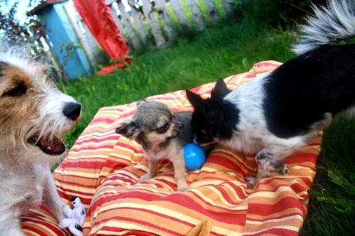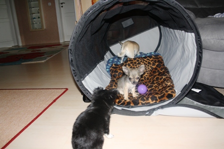 Das kleine Knöpfchen ist zu Uta Kesting und ihrer Familie ins Kleinpfotenhaus gezogen und hat jede Menge neue Freunde zum Spielen gefunden. Wir drücken feste die Daumen, dass aus ihr mal eine feine Zuchthündin wird