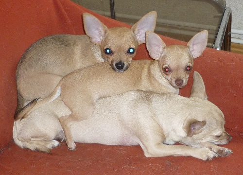 16 Wochen Das P-Duo ist immer noch hier, aber durch technische Probleme u einer Menge privater Turbolenzen konnte ich mich länger nicht um die HP kümmern. Fotos gibt es leider auch nicht viele, da die Kamera kaputt war (das Gesetz der Serie eben). Inzwischen haben sie sich prächtig entwickelt. Die Riesenohren von Peter Pan stehen wie eine Eins, beide Hoden sind auch tastbar. Vom Wesen her ist Peter Pan ein fröhlicher und ausgeglichener Bub, der gern schmust, aber noch lieber rast er umher und klettert herum. Patchuli ist eher zart und schmusig, weniger mutig als ihr Bruder, aber wenn die beiden kämpfen, dann kann sie sich prima zur Wehr setzen - Frauenpower halt! |