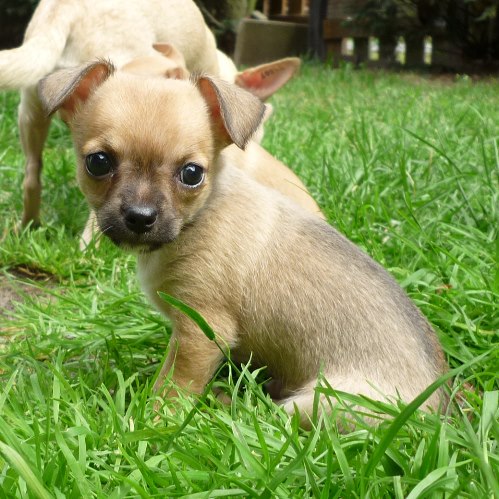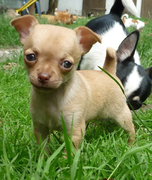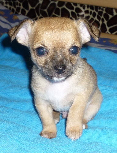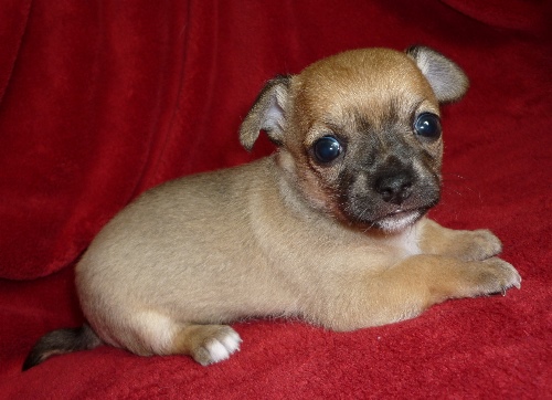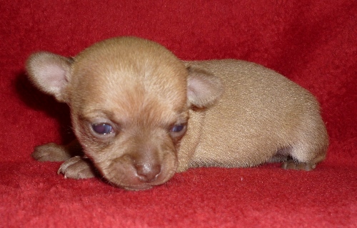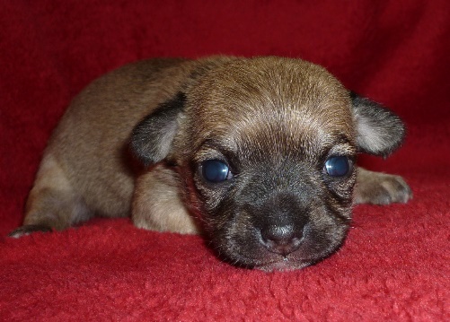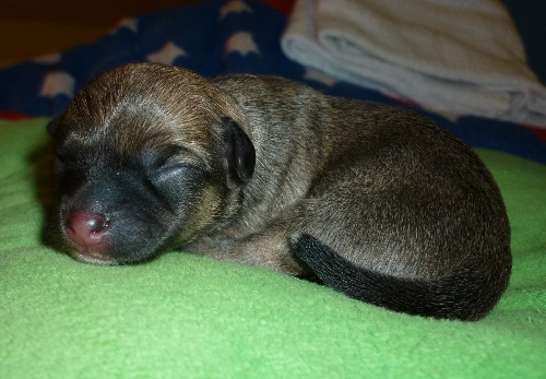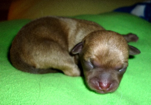 5 Wochen In der 5. Woche hat das Duo endlich angefangen, Welpennahrung zu sich zu nehmen. Allerdings steht die Mama immer noch an erster Stelle, wenn der Hunger ruft. Aber jetzt spielen sie schon schön miteinander, mit Mama und Spielzeug. Peter Pan ist der mutigere von den beiden, aber die kleine Patchuli hat ihren Bruder schon ganz schön im Griff. |